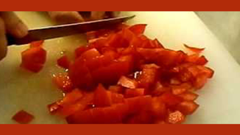 Toasted bread seasoned with fresh tomatoes, salt, pepper, basil